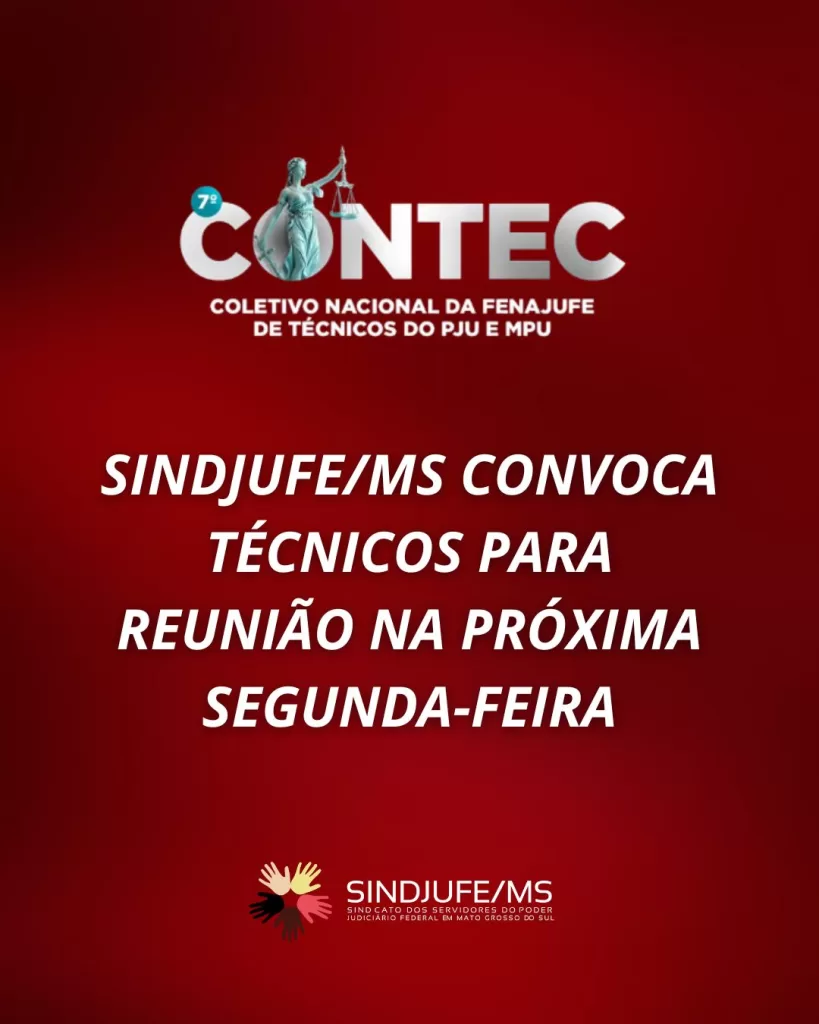Conforme as diretrizes da Fenajufe, os representantes para o CONTEC devem ser eleitos, preferencialmente, em reunião de Núcleo. Por isso, o SINDJUFE/MS reforça o chamado para que todos os Técnicos filiados participem do encontro na próxima segunda-feira.