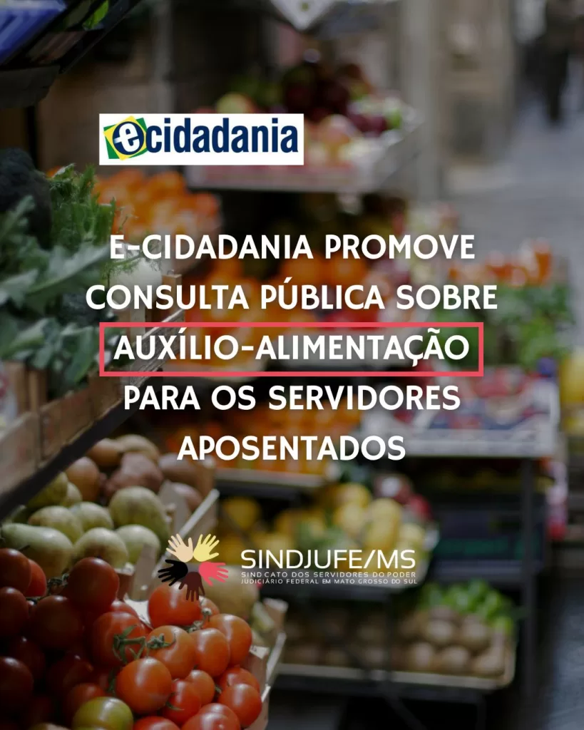 O SINDJUFE/MS também atua pela conquista do Auxílio-nutrição para os servidores aposentados e conclama todas e todos a apoiarem a consulta pública em favor do benefício que garantirá alimentação para aqueles que fizeram tanto pelo serviço público no Brasil.