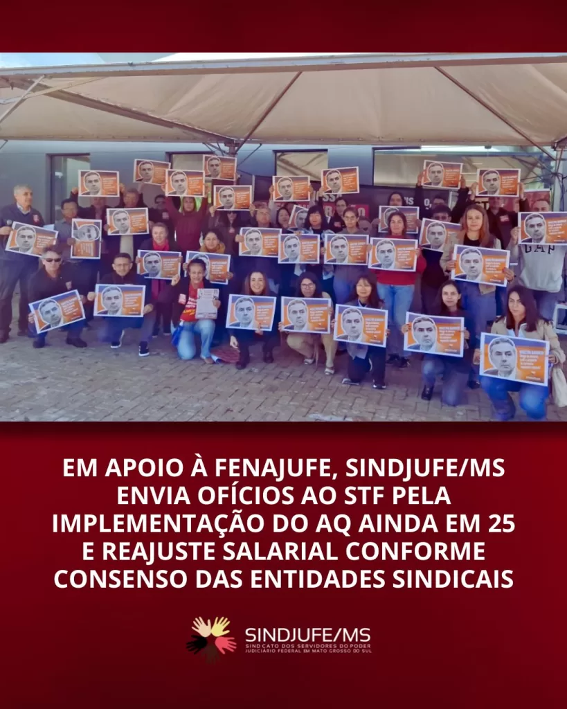 Sobre o Adicional de Qualificação, o SINDJUFE/MS alerta para a preocupação com a proposta apresentada pelos Diretores-Gerais dos tribunais superiores no Fórum de Carreiras do CNJ, que prevê a implementação do AQ apenas a partir de julho de 2026, contrariando o compromisso anteriormente assumido pelo presidente do STF de viabilizar o pagamento ainda neste ano. Neste sentido, o sindicato solicita que o Supremo promova articulação junto ao presidente da Câmara para que o projeto tramite em regime de urgência para que a implementação ocorra de forma imediata, assim que aprovado.
