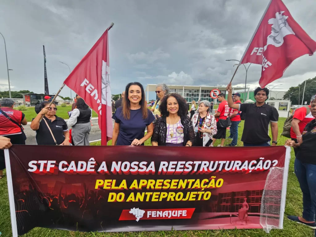 Já na quarta-feira (04), as representantes do SINDJUFE/MS participaram dos atos públicos organizados pela Federação em prol da derrubada do Veto 45/2025 em frente o Anexo 2 da Câmara dos Deputados e em favor da continuidade das negociações pela reestruturação das carreiras dos servidores do PJU, no Supremo Tribunal Federal.
