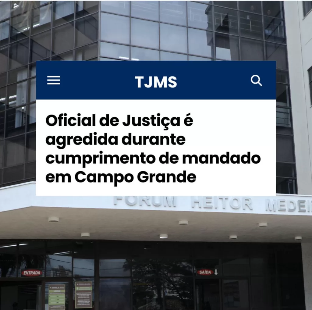 O Sindicato dos Servidores do Poder Judiciário Federal no Estado de Mato Grosso do Sul (SINDJUFE/MS) repudia veementemente a agressão sofrida pela oficiala de justiça do TJMS no último dia 9 de setembro, durante o cumprimento de mandado de busca e apreensão na Vila Palmira, em Campo Grande. Segundo o site do Tribunal de Justiça de Mato Grosso do Sul (TJMS), o proprietário do carro, que alegava ter quitado a dívida, ameaçou estar armado, agarrou o braço da servidora e a empurrou, causando um hematoma. A agressão foi confirmada por uma testemunha, um representante do banco.