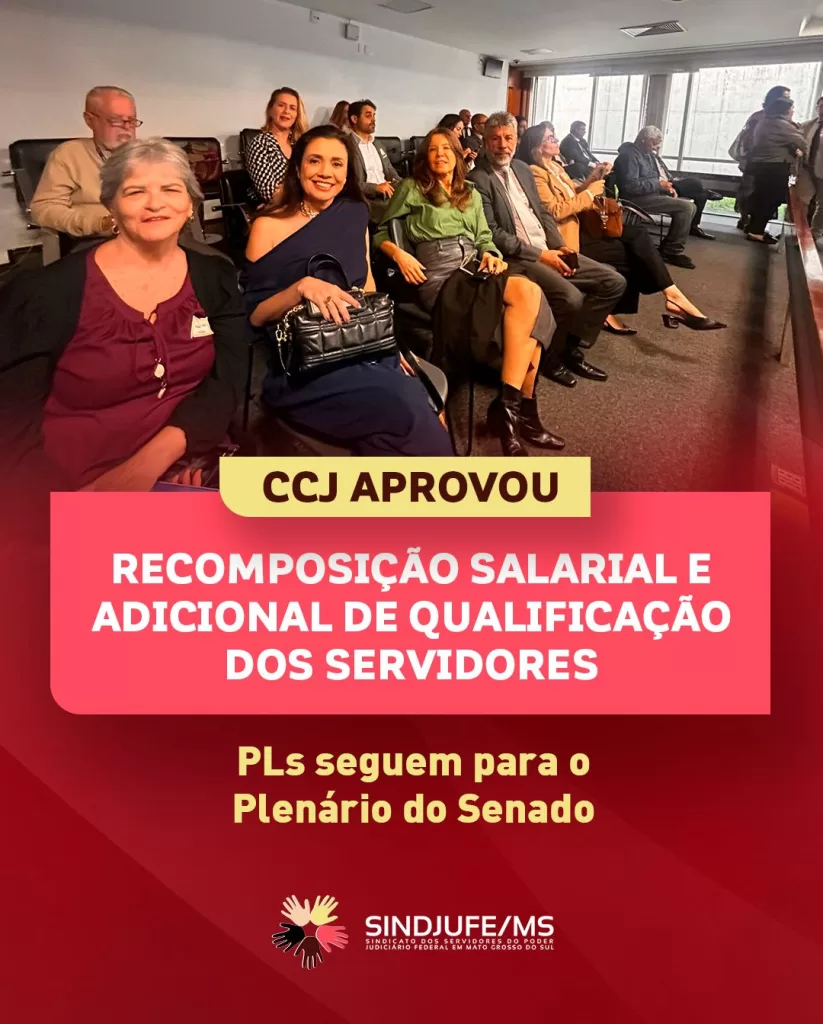 Com as duas aprovações, a pauta dos servidores do PJU avança de maneira decisiva. O SINDJUFE/MS permanece mobilizado e seguirá acompanhando, em Brasília, os próximos passos das matérias até a votação final no Senado.